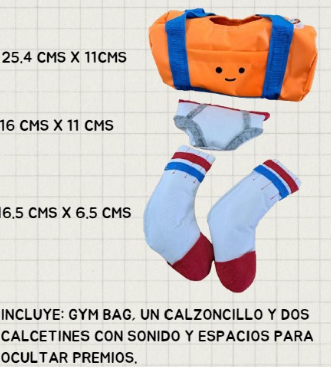 medidas 25.4 x 11 cms Contiene: 1 gym bag + 1 calzoncillo + 2 calcetines