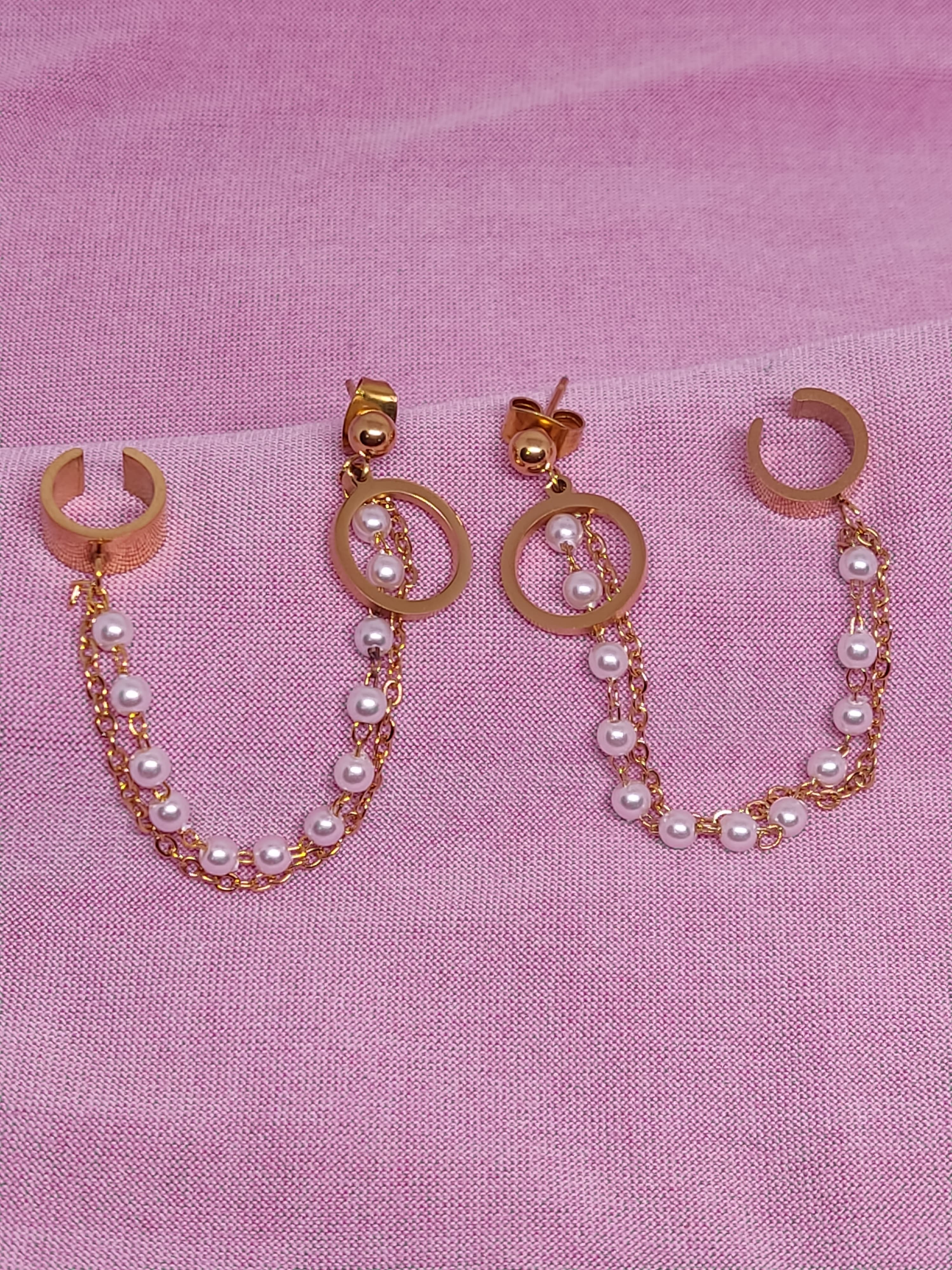 Arete de acero inoxidable con cadena y perlas acrílicas con earcuff incluido
