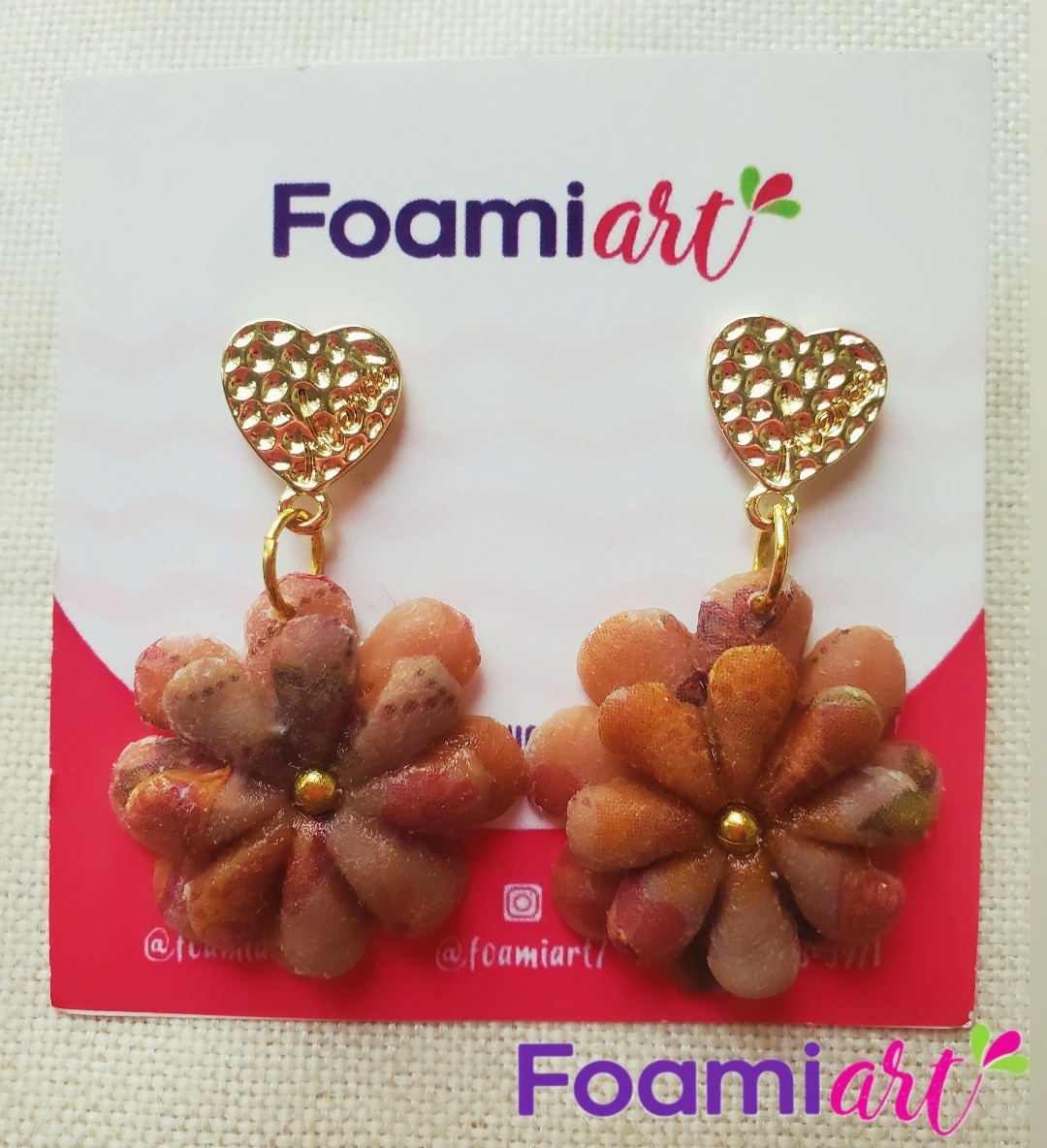 aretes elaborados en; porcelana en frio y resina con a tecnica decopash en base de acero