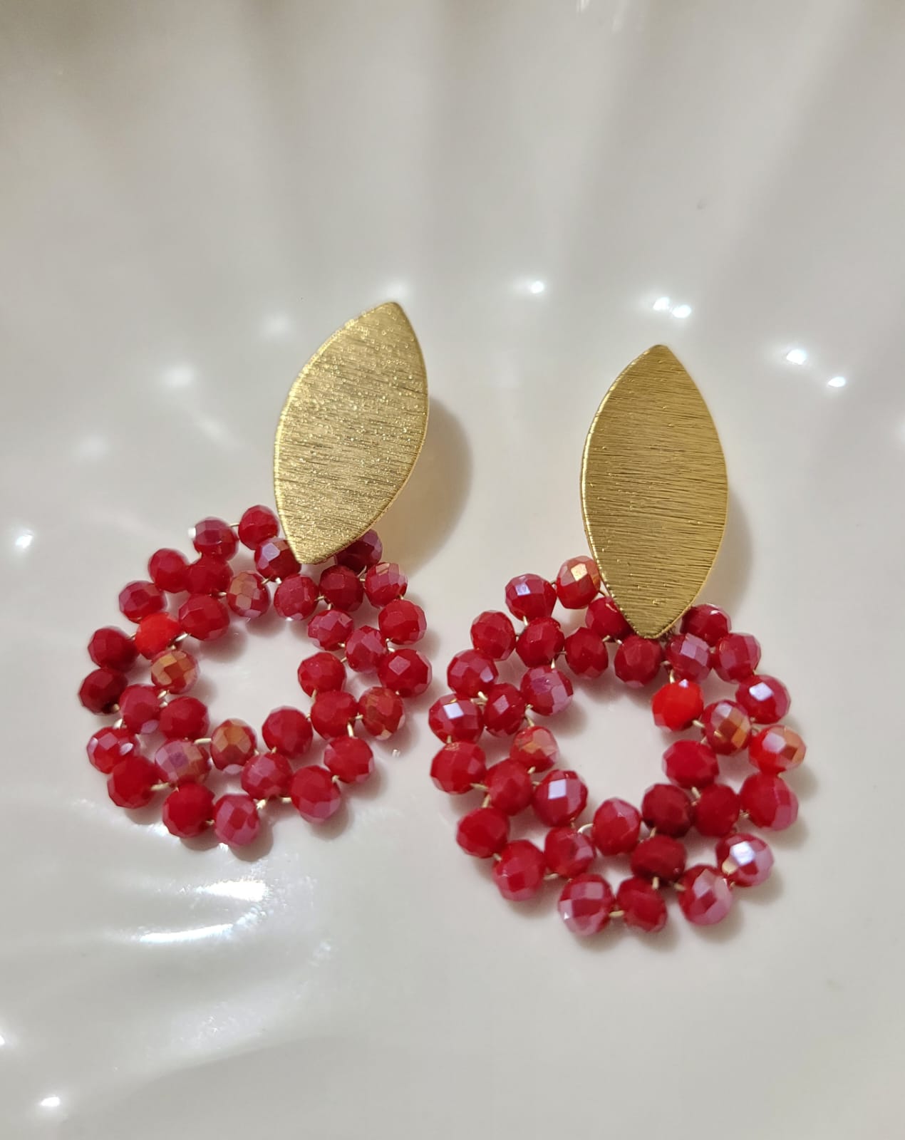 Aretes tejidos con cristal checo de 4mm Color: Rojos Colgantes Base de oro laminado calidad AAA