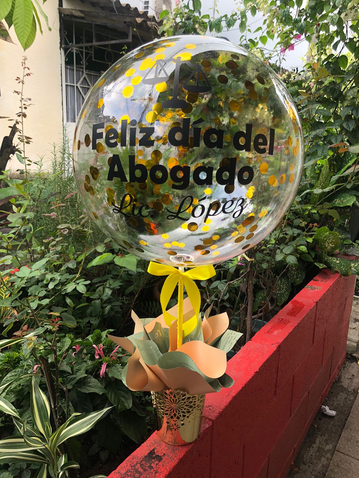 Celebra ocasiones especiales con elegancia y originalidad con nuestros arreglos de globos personalizados para caballeros. Para mas información y nos digas la frase que deseas en el globo burbuja, contáctanos al 79859804. **Este arreglo solo esta disponible para envíos propios dentro de la zona (consulta al 79859804), esta es la opción que debes seleccionar al momento del envío, cuando vayas a terminar tu compra en la web**