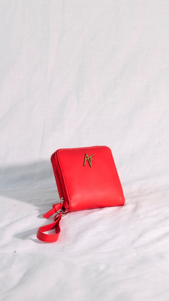 Billetera pequeña con separadores internos. Tiene espacios para tarjetas, billetes, monedas y más. Trae un strap removible corto para utilizarlo en la muñeca o de mano.