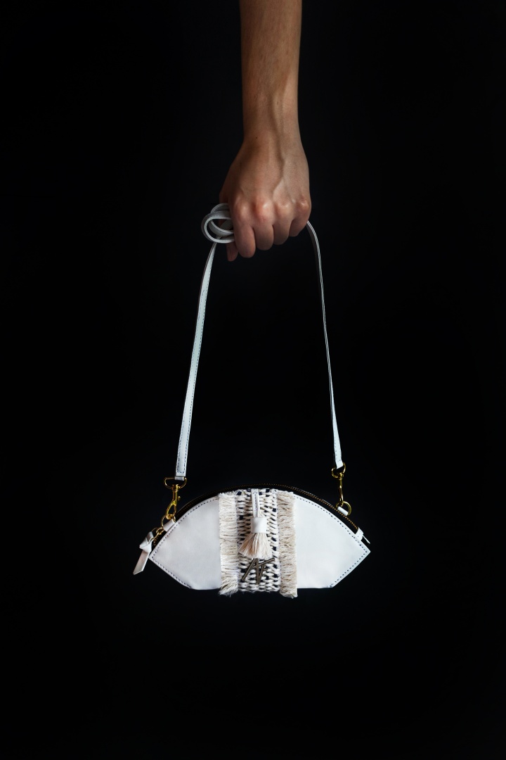 Billetera mediana con aplicación de tejido central con flecos hacia los lados. Tiene bolsillos internos para tarjetas, billetes, monedas y más, y un bolsillo externo para celular (máximo iPhone plus) y trae un strap removible para utilizarlo como crossbody. Medidas: 4”x9.25”x1”