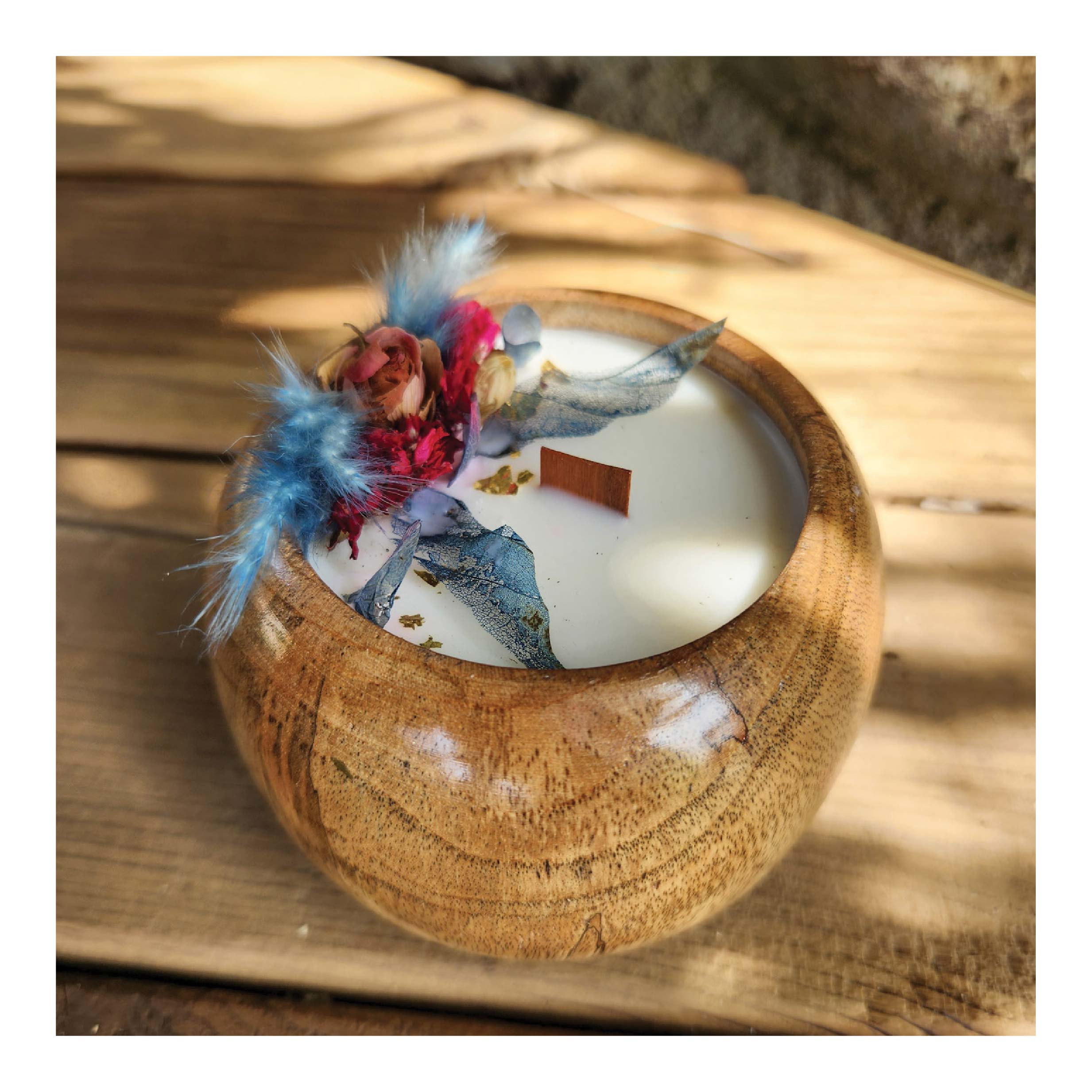 La cálida elegancia de nuestra vela en bowl de madera de cedro, una obra maestra artesanal que encierra la naturaleza en su forma más pura. Cada vela se ha creado con esmero, utilizando cera de coco o soja, respetuosa con el medio ambiente . Los detalles florales, tratamientos en añil, añaden un toque de color y tradición. Con un pabilo ecológico que asegura una quemadura limpia, esta vela no solo ilumina tu espacio, sino también tu conciencia.