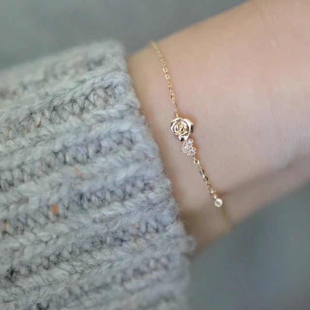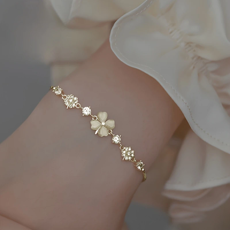 Bracelete Ajustable con Colgante de Trébol y Pétalos de Circonita Sintética - Joyería Dorada