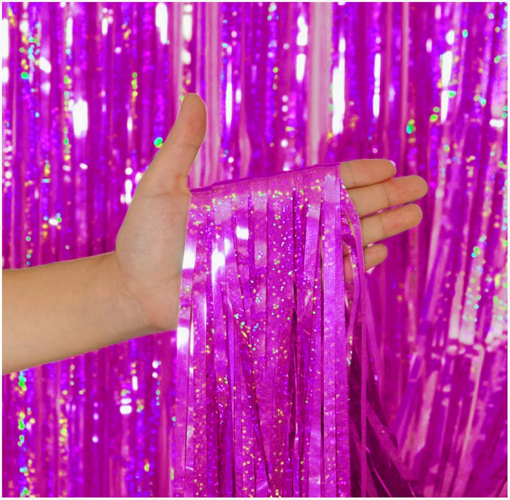 Cortina color fuscia de foil laser para decorar tus eventos, medidas: 1mt. de ancho x 2 mt. de alto, facil de cortar si se necesita, trae cinta doble cara para pegarla.