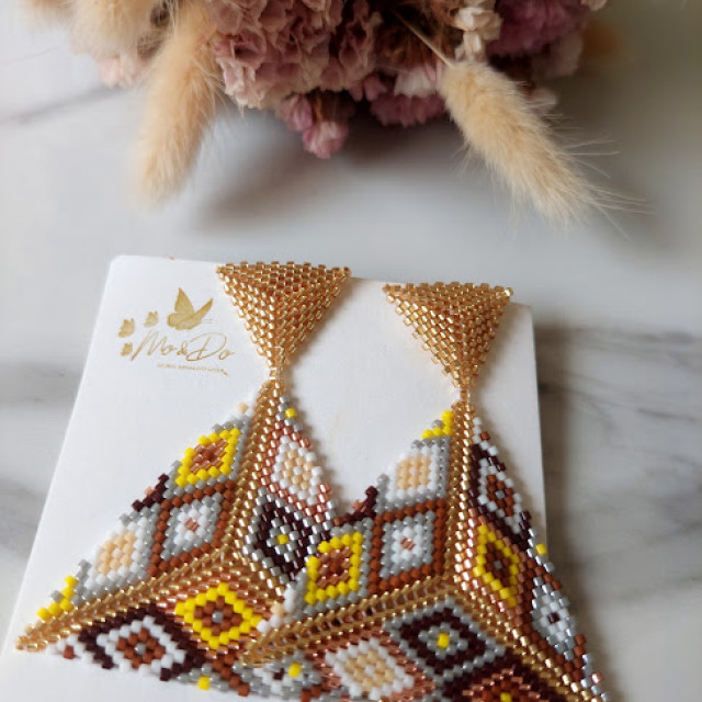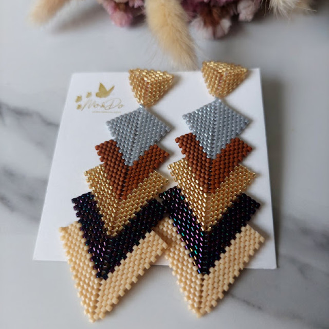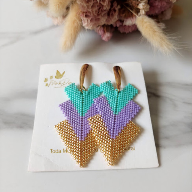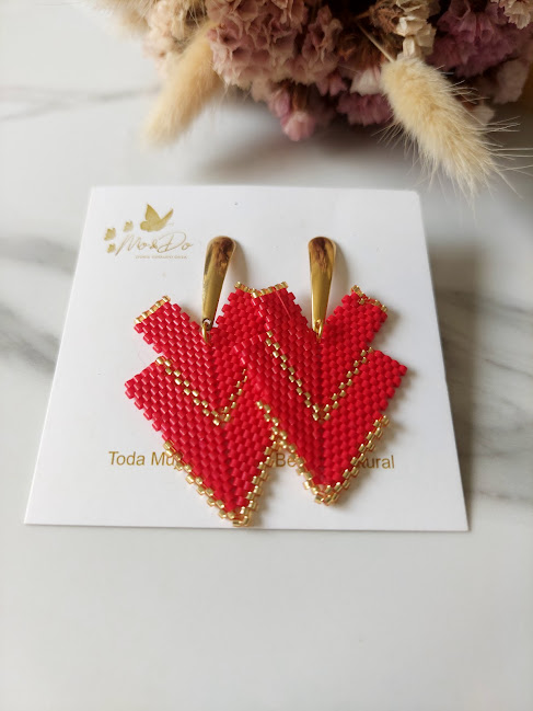 Flechas tejidas miyuki tono rojo con dorado y base acero inoxidable