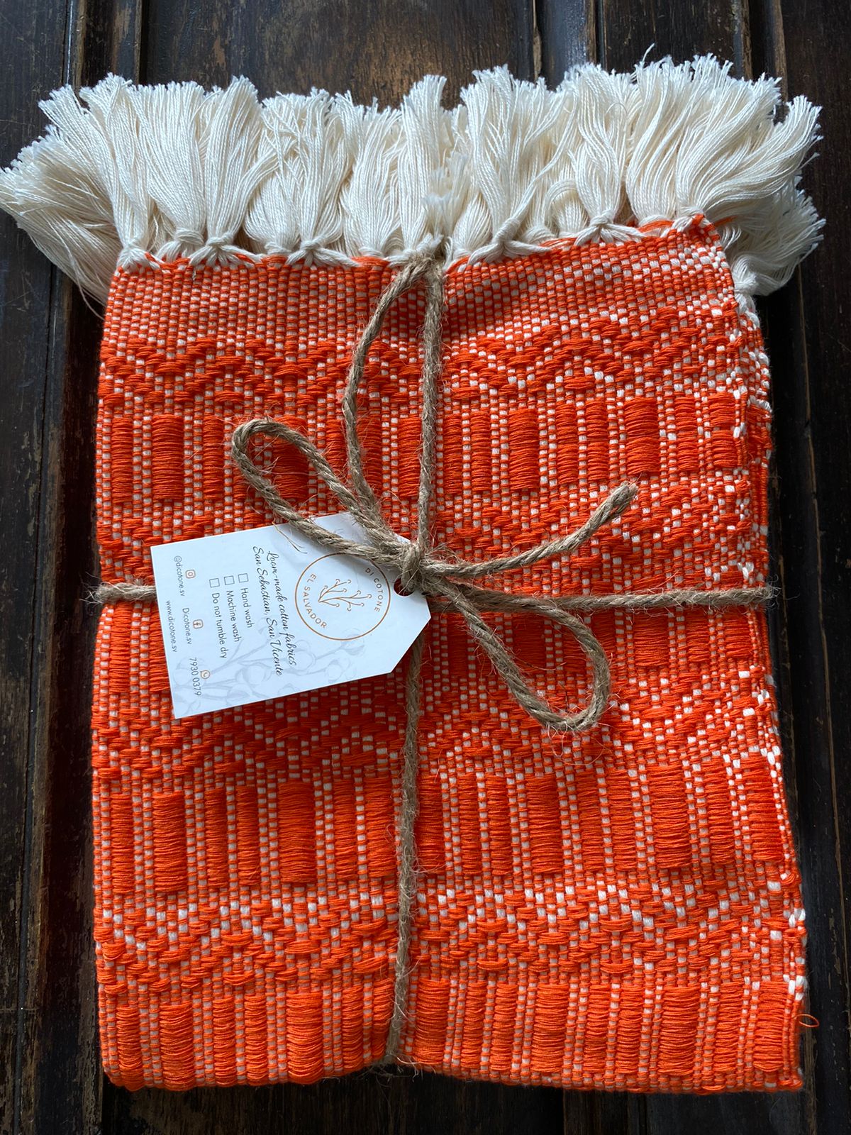 Juego de cuatro manteles individuales artesanal color naranja, material Algodón y otras fibras.