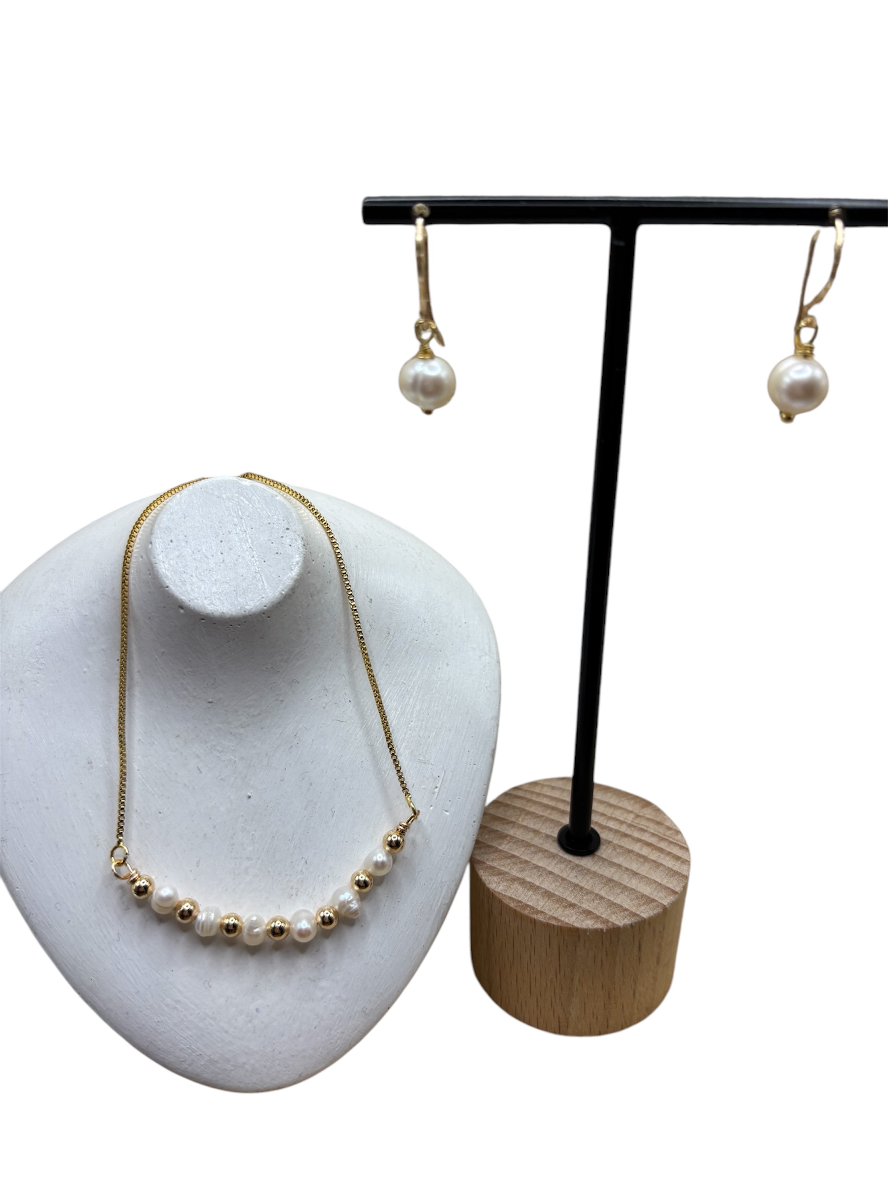 Hermoso set de perlas de río con aretes estás divino con cadena de oro laminado