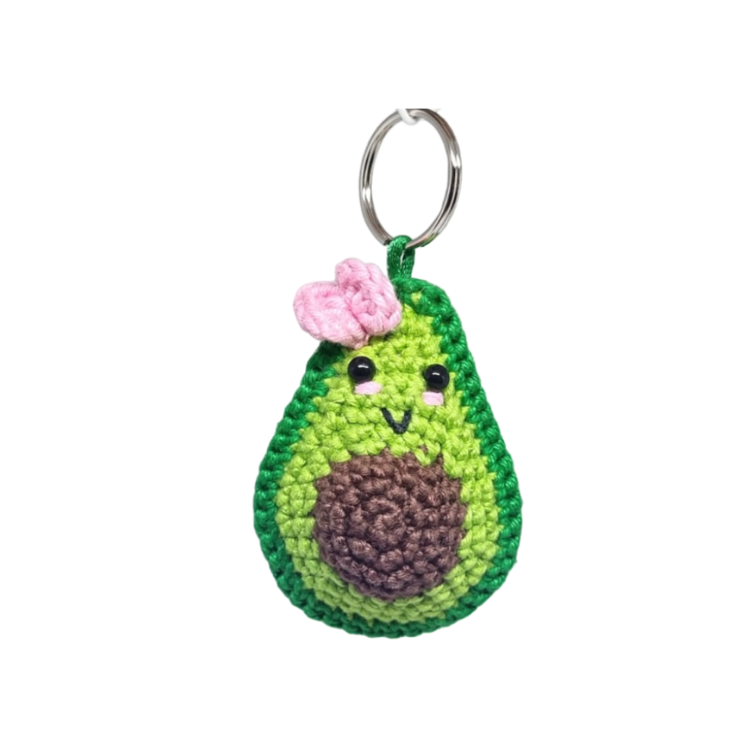 Llaveros aguacate sin semilla y con semilla y chonga, bordados a mano con la técnica de croché. Ideal para decorar llaveros, carteras, bolsos o para regalar a esa persona especial.