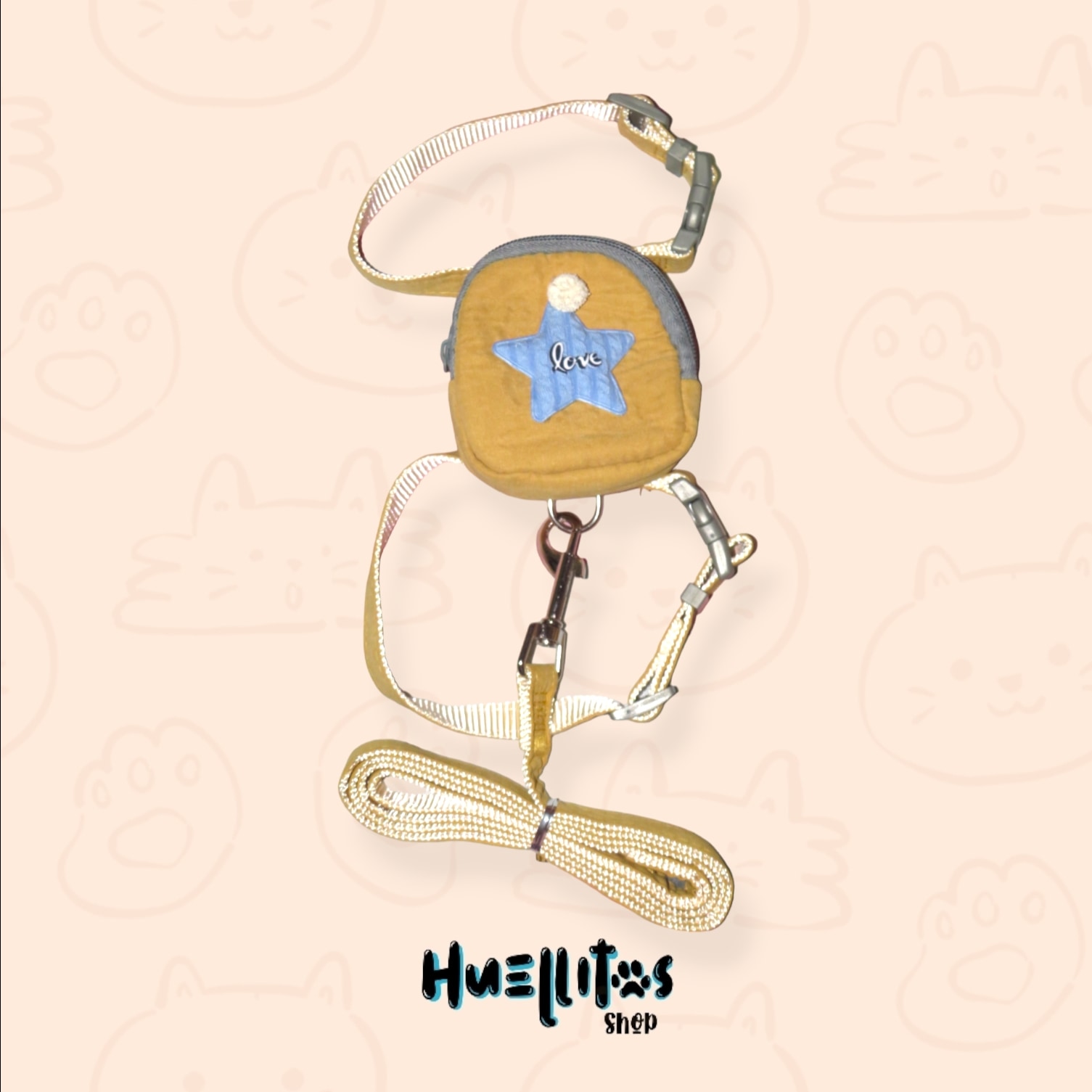 Pechera con mochila ajustable talla S con correa. Para perros y gatos.