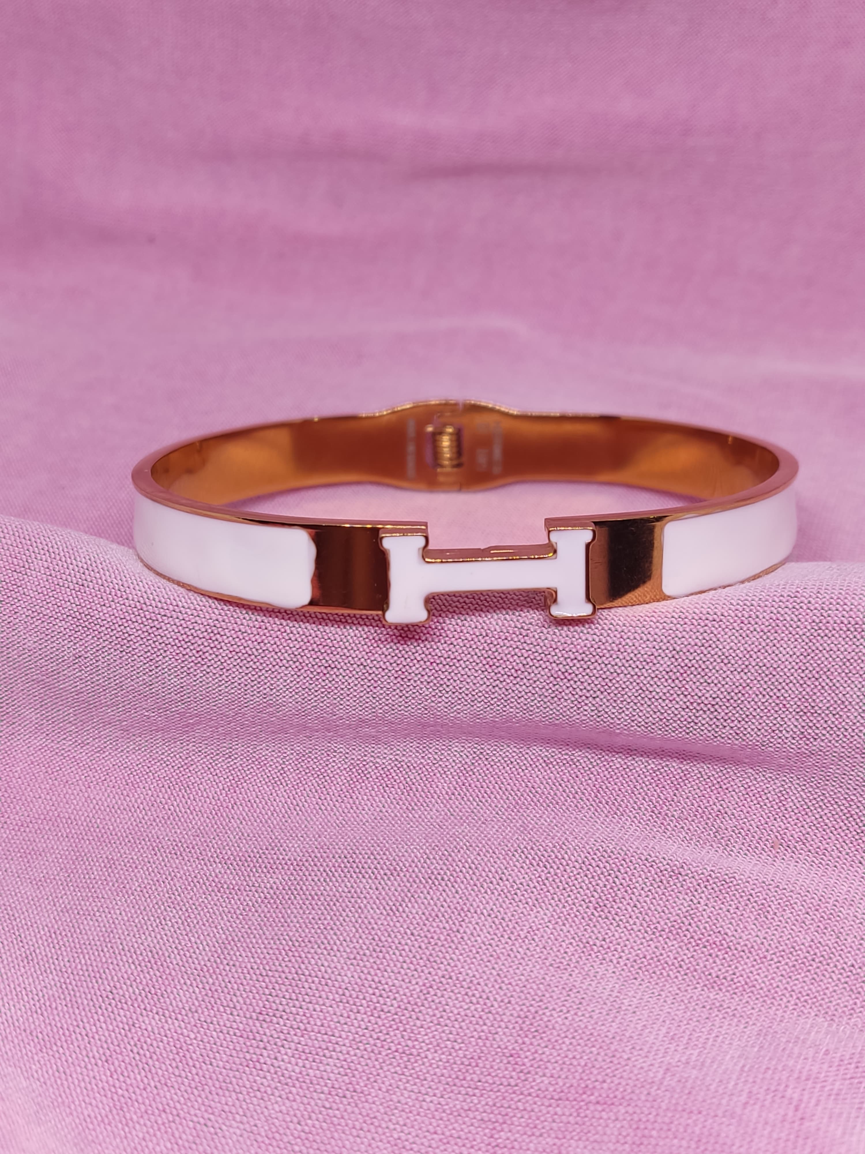 Pulsera de acero inoxidable con baño acrílico de color blanco