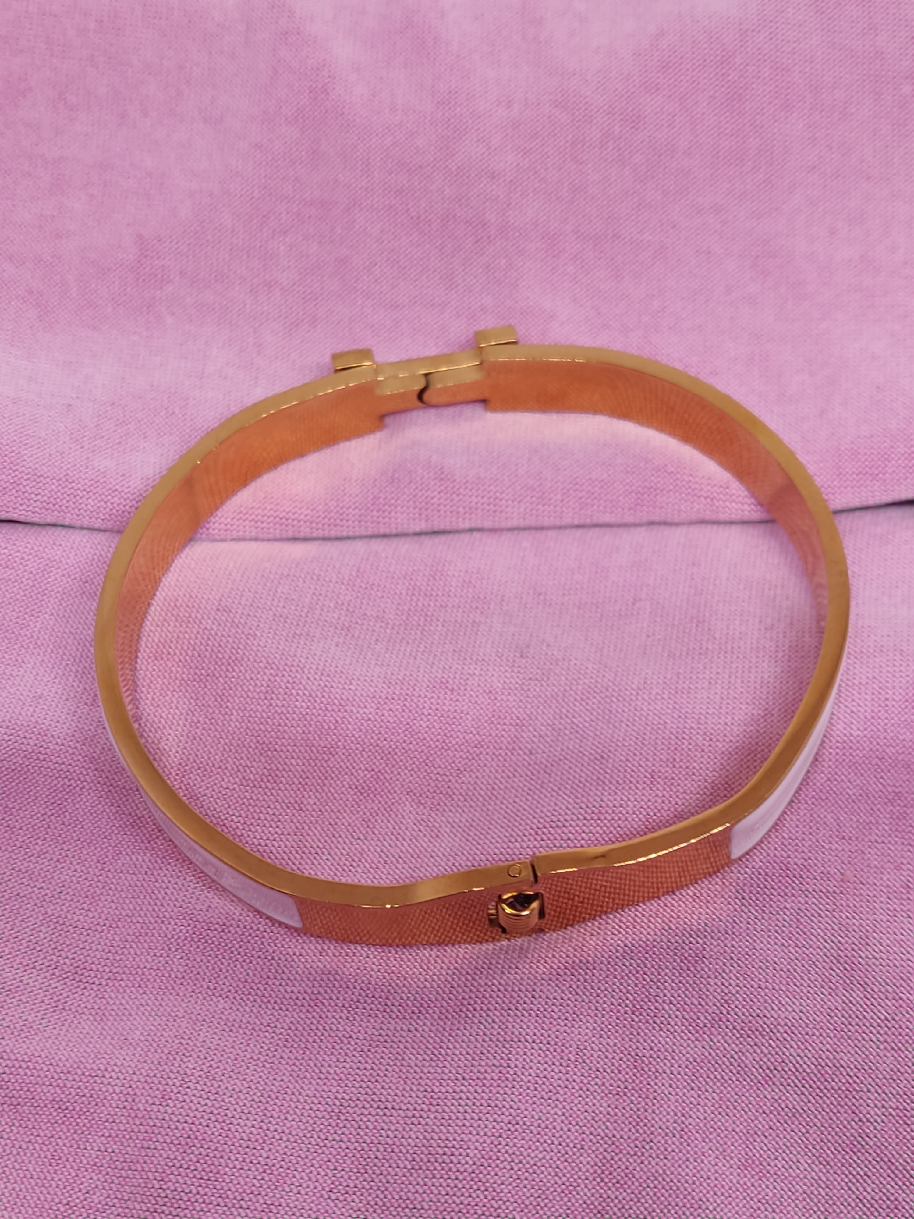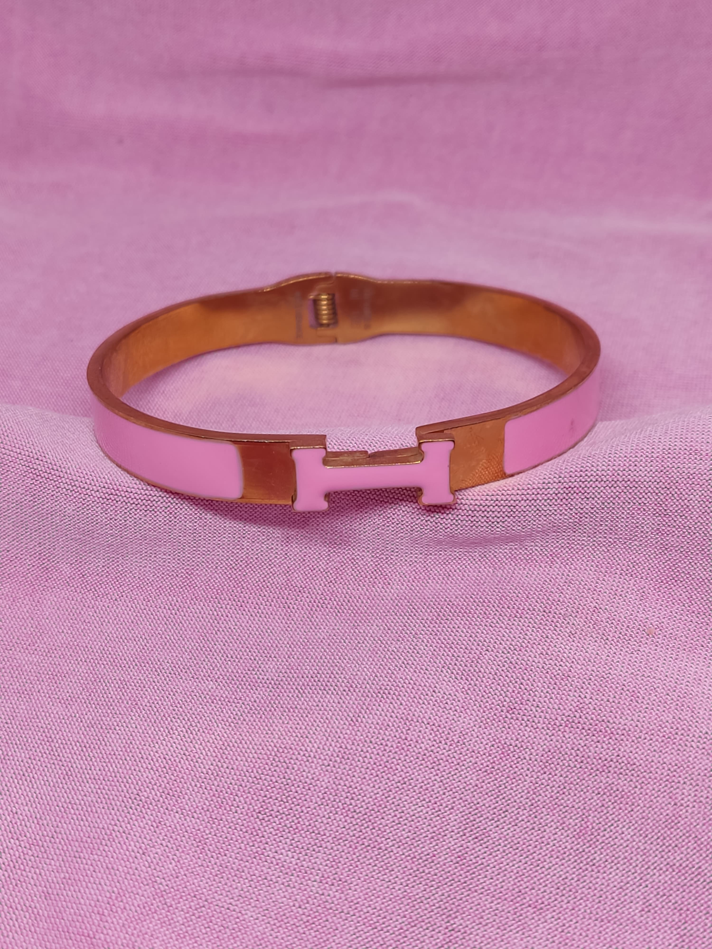 Pulsera de acero inoxidable con baño acrílico de color rosa