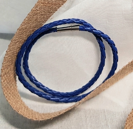 Pulsera con dos vueltas de cuero color azúl, broche de acero, medida 42 cm