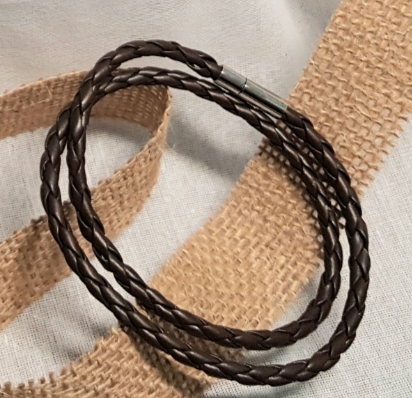 Pulsera con dos vueltas de cuero color café, broche de acero, medida 42 cm