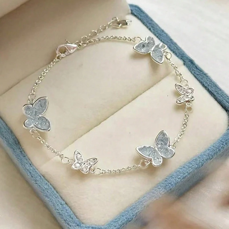 Pulsera de imitación de cristal de zircónia sintética, colgante de mariposa dulce y fresca
