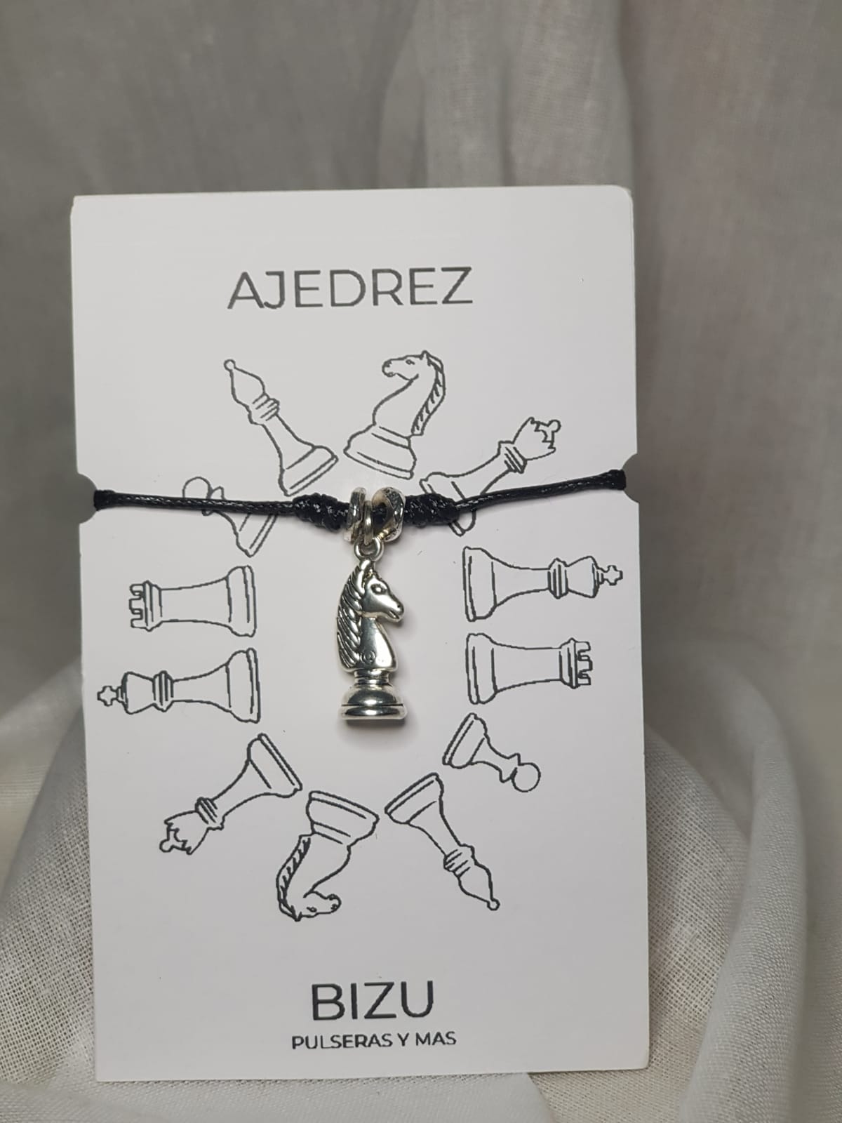 Pulsera de hilo encerado negro con pieza del CABALLO de ajedrez material pewter