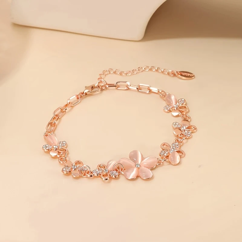 Pulsera Elegante Ajustable de Flores con Pedrería para Mujeres y Adolescentes