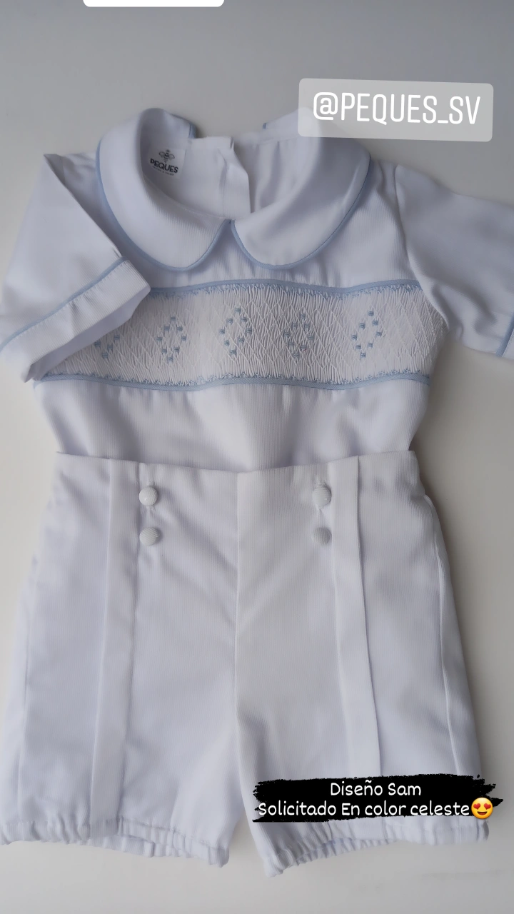 Conjunto Sam: Comodidad y estilo para los pequeños aventureros. Shorts con detalles únicos y camisa elegante bordada a mano con el diseño exclusivo de Peques. ¡Haz que tu hijo destaque con este conjunto de moda!