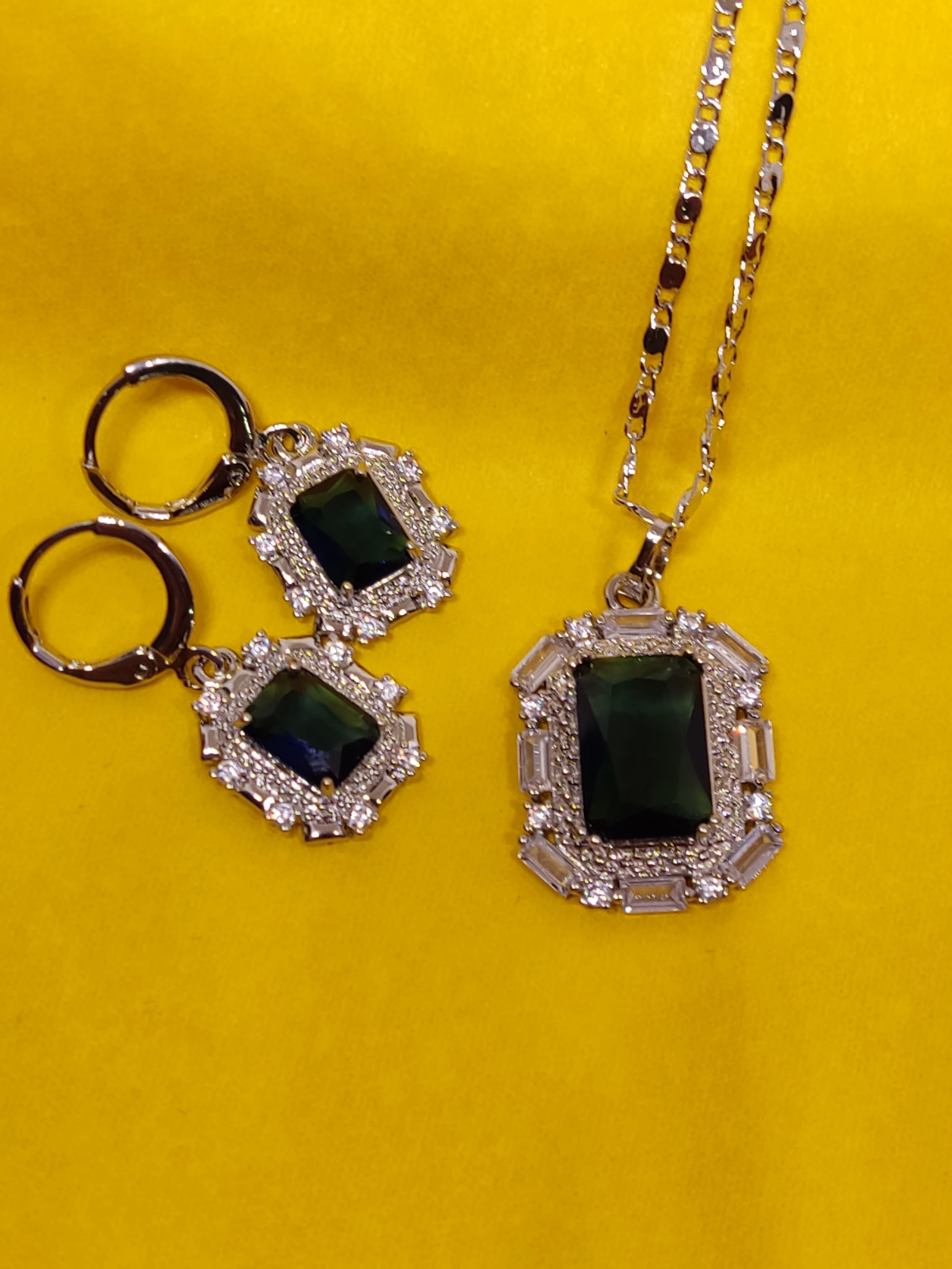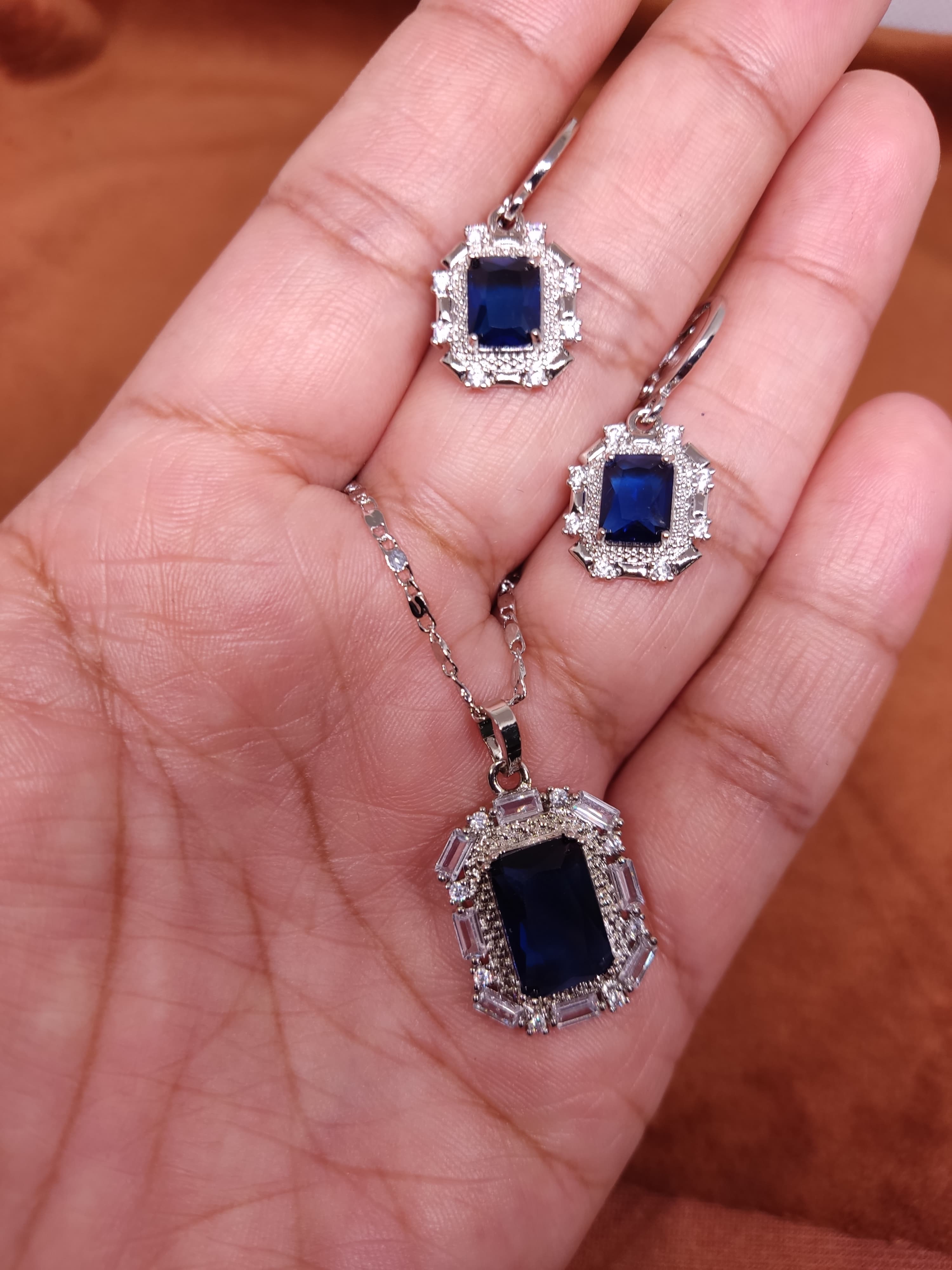 Set hecho de aleación de zinc incluye 1 collar con dije y cristal azul 1 par de argollas con cristal azul