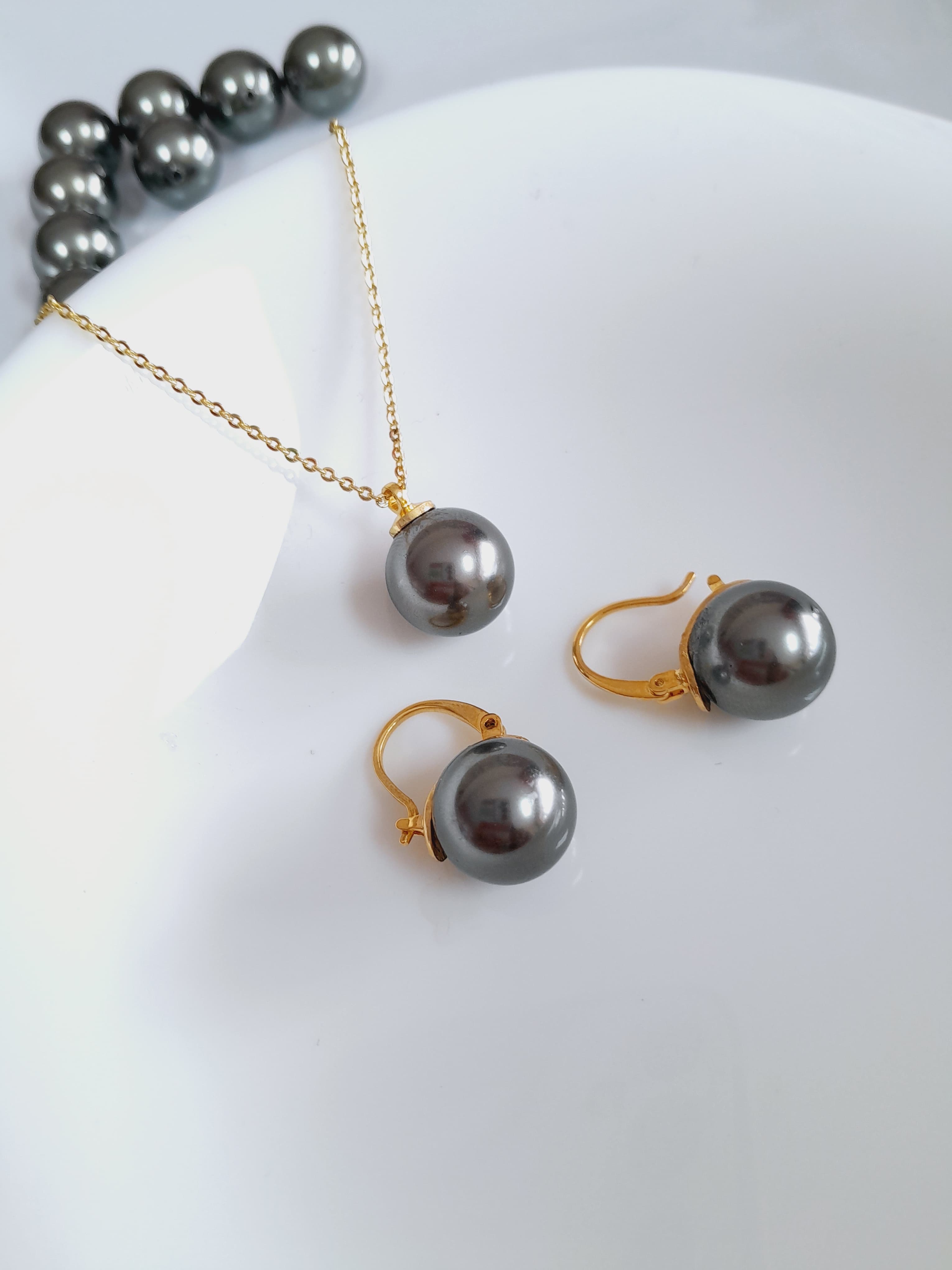Hermoso set de perla barroca negra en cadena de oro laminado con la pasión de las perlas