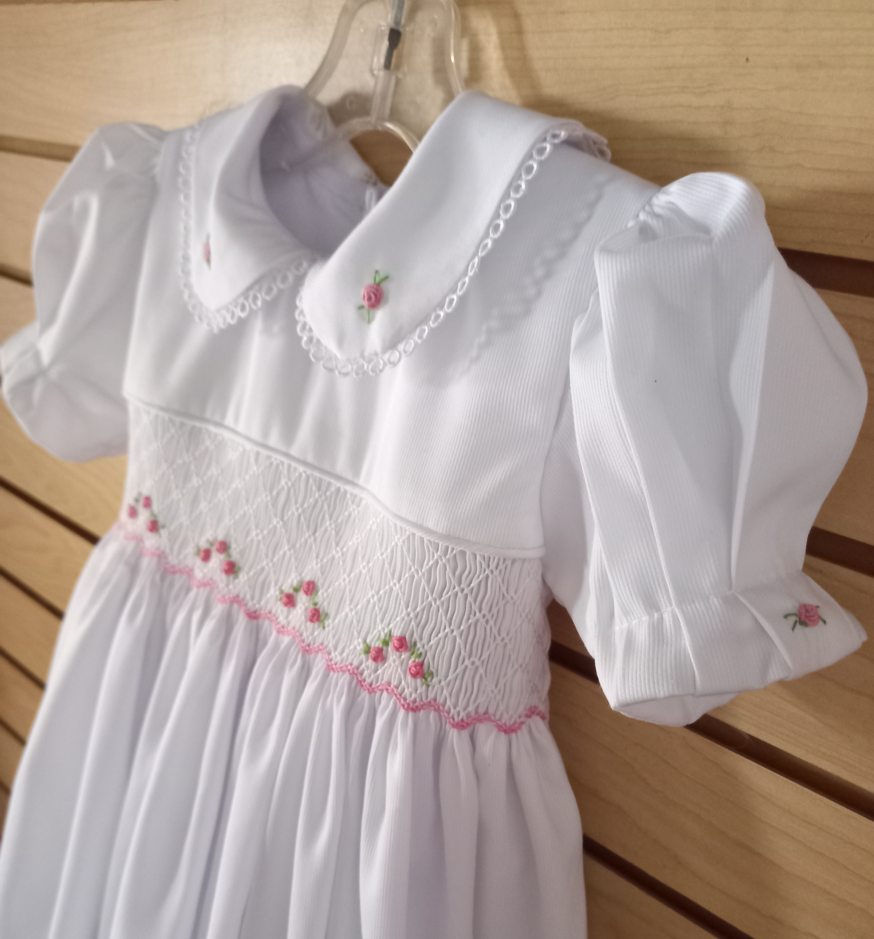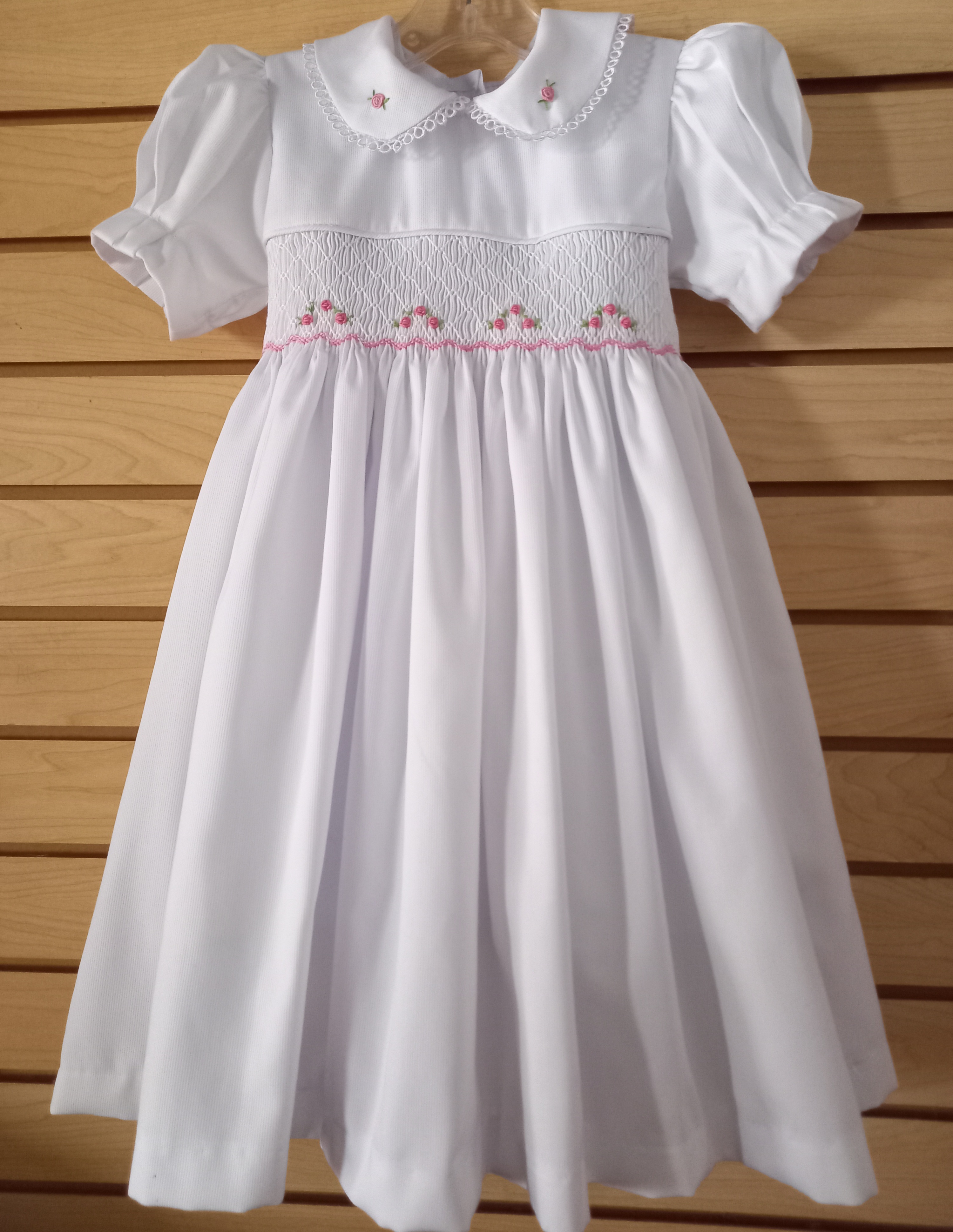 ¡Vanessa es el vestido perfecto para las pequeñas fashionistas de Peques! Con su bordado panalito, detalle de Rococó en cuello y mangas, diseño de manga único y lazas para ajustar atrás, es una pieza única y elegante que seguro robará miradas. ¡Haz que tu niña luzca espectacular con este hermoso vestido!